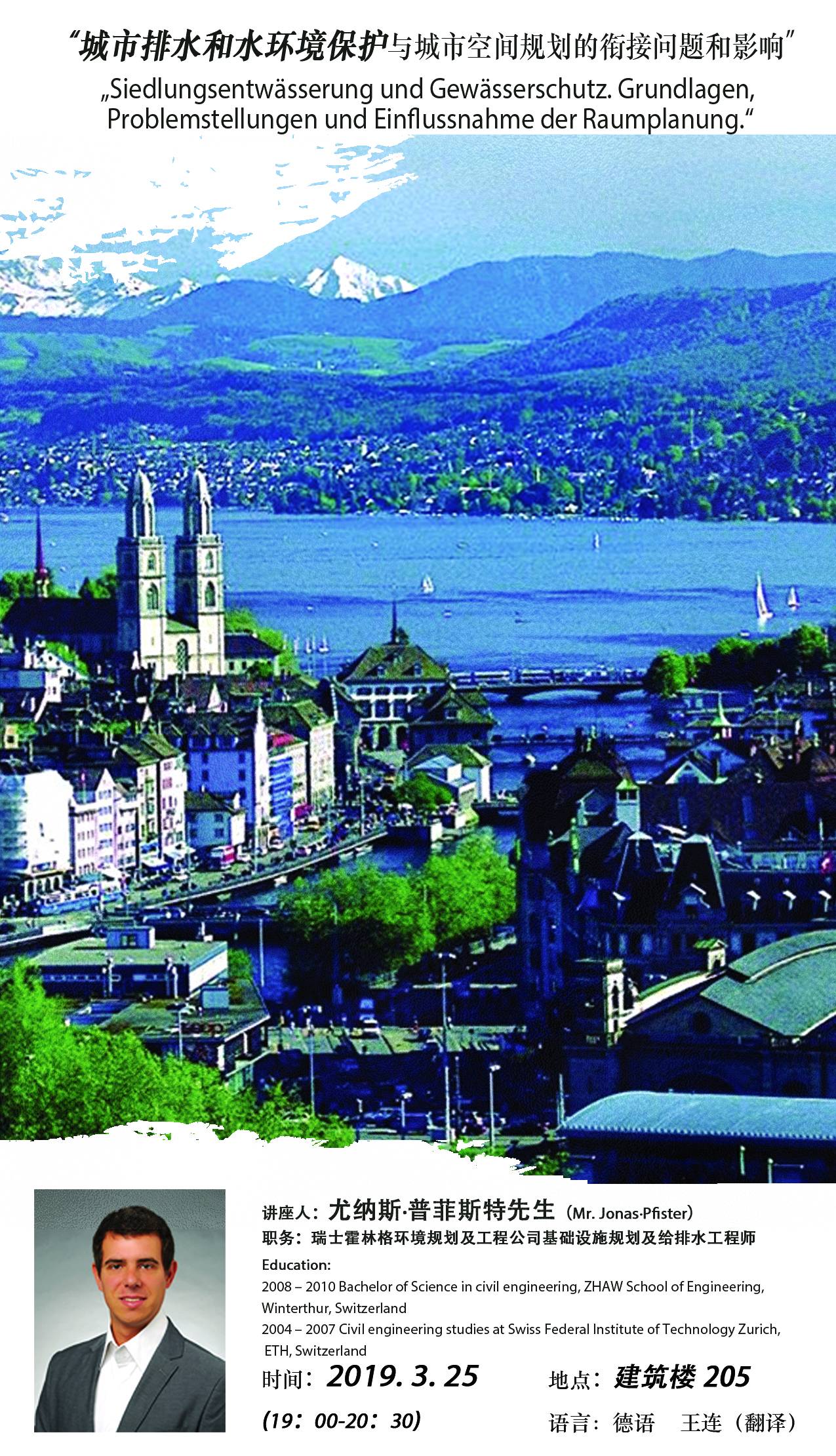 讲座:“城市排水和水环境保护与城市空间规划的衔接问题和影响”(主讲人:尤纳斯.普菲斯特)