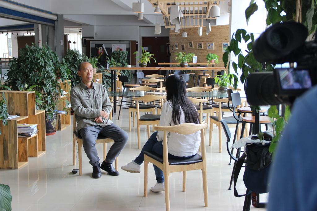 9月22日上午,云南电视台记者在建筑楼中庭“建筑客厅”对捕鱼游戏下载