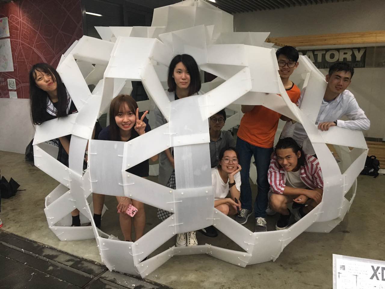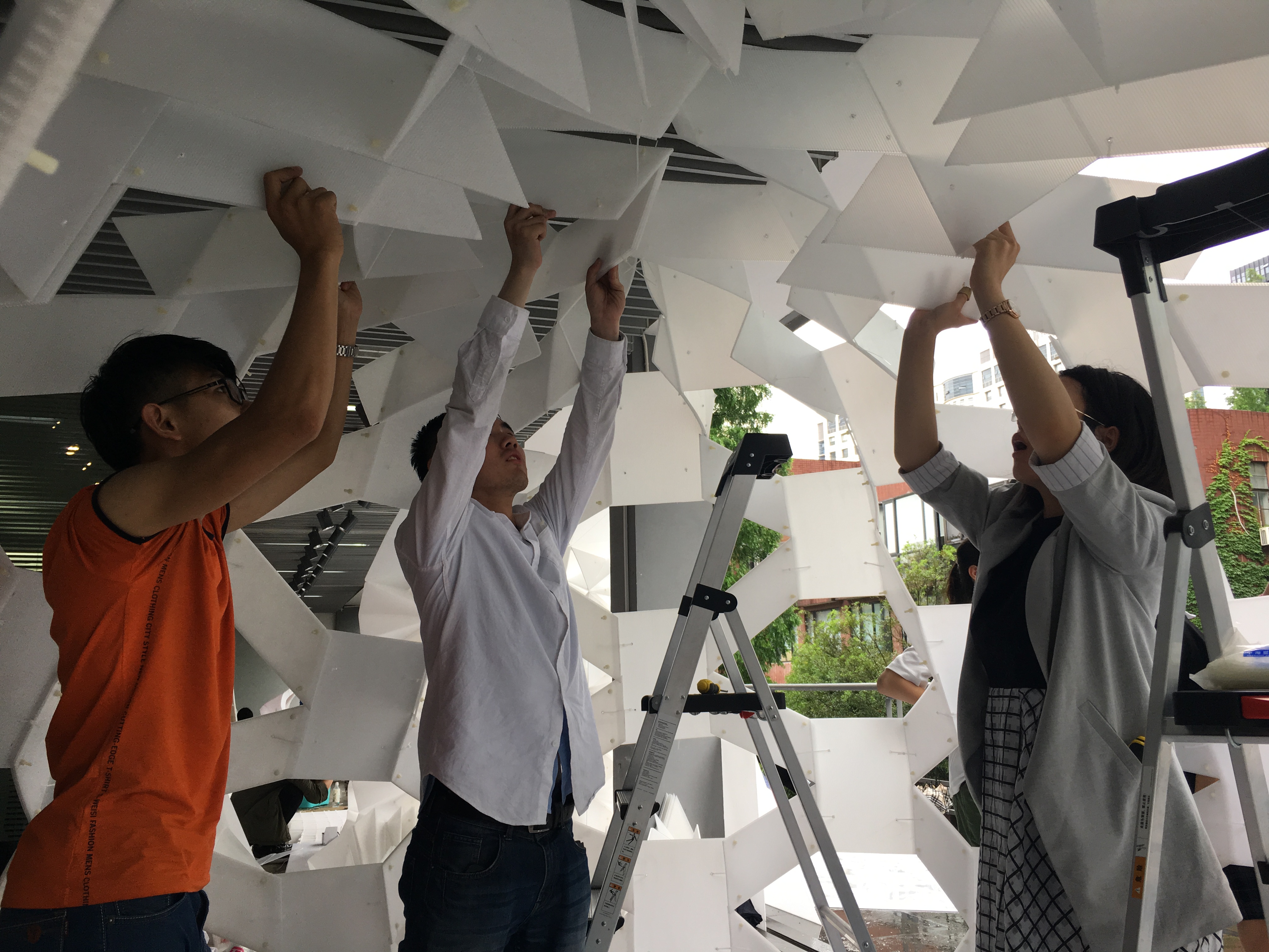 的全体一年级学生,以及同济大学土木学院、同济大学设计与创意学院、同济大学艺术与传媒学院之外,还邀请了天津大学、重庆大学、哈尔滨工业大学、华南理工大学、中央美术学院、北京建筑大学、上海交通大学、上海大学、湖南大学、大连理工大学、昆明理工大学、深圳大学、沈阳建筑大学、长安大学、新疆大学等15所国内大学的建筑院校代表队,以及佐治亚理工大学(美)、夏威夷大学(美)、麦吉尔大学(加)、格拉兹工业大学(奥)、凡尔赛国立高等建筑学校(法)、加泰罗尼亚理工大学(西)、威尼斯建筑大学(意)、魏玛包豪斯大学(德)、墨尔本大学(澳)、国立釜山大学(韩)、九州大学(日)等11所来自美洲、欧洲、大洋洲和亚洲的国外建筑院校共襄盛会,师生总人数达500余人,共建造了62栋中空PP板房(每栋面积约8平方米)。中外学生的同场竞技,也展现了不同文化和教育背景下的思维及行动模式差异。