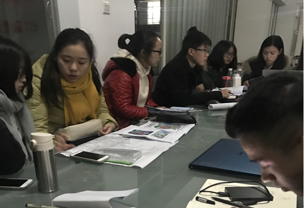 调研结束后,四校师生分组展开了调研研讨和教学指导活动。分组教学结束后,各组分别进行了调研汇报,四校专业教师分别对每组的汇报进行了交叉指导和点评。