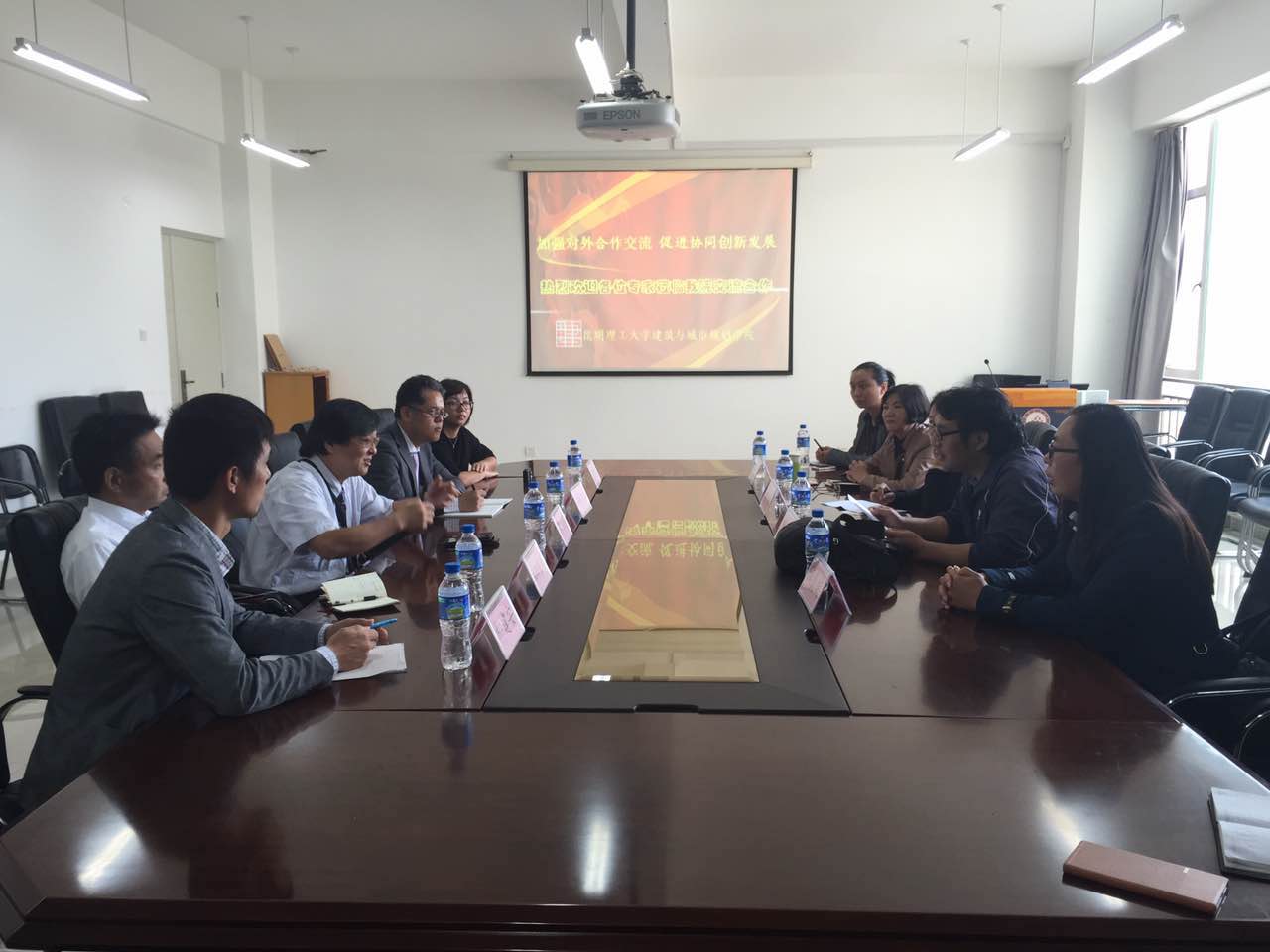 周峰越副校长对日本北九州市立大学三位教授来访表示欢迎,并介绍了学校的办学历史、学科特色等,对呈贡大学城未来的发展与两校的合作前景进行了展望,希望三位教授能通过这次访问,双方共同探讨感兴趣的研究领域,逐步推动两校的教师交流、学生交流和合作项目的进一步开展,座谈结束后周峰越副校长还将专著赠与三位教授。
