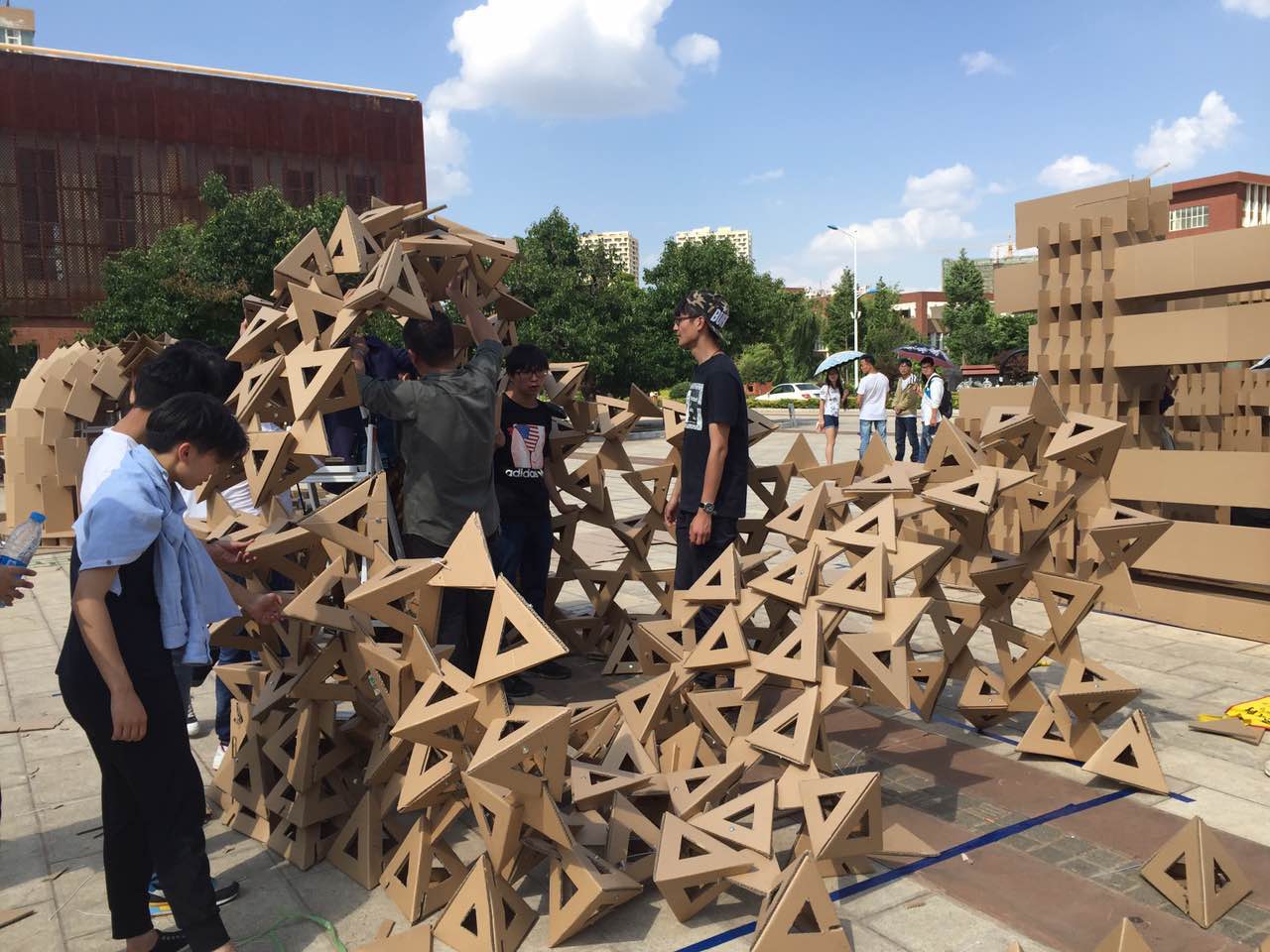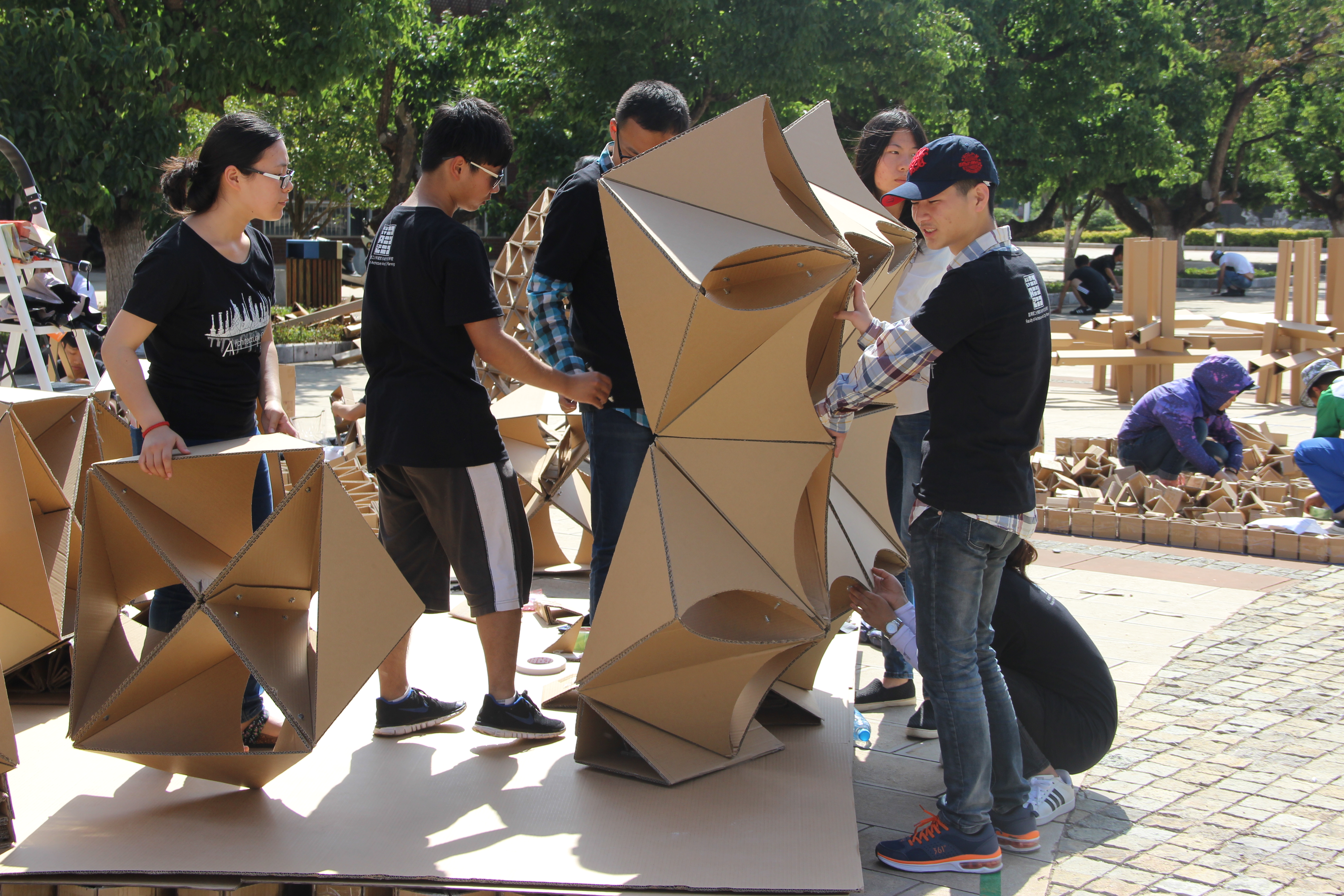 承办的“中建人文杯”2016昆明理工大学建筑文化节暨第一届云南省大学生建造节——“纸板聚落”建筑设计与建造竞赛于 5 月 27 日至28 日在呈贡校区建筑楼前广场举行。