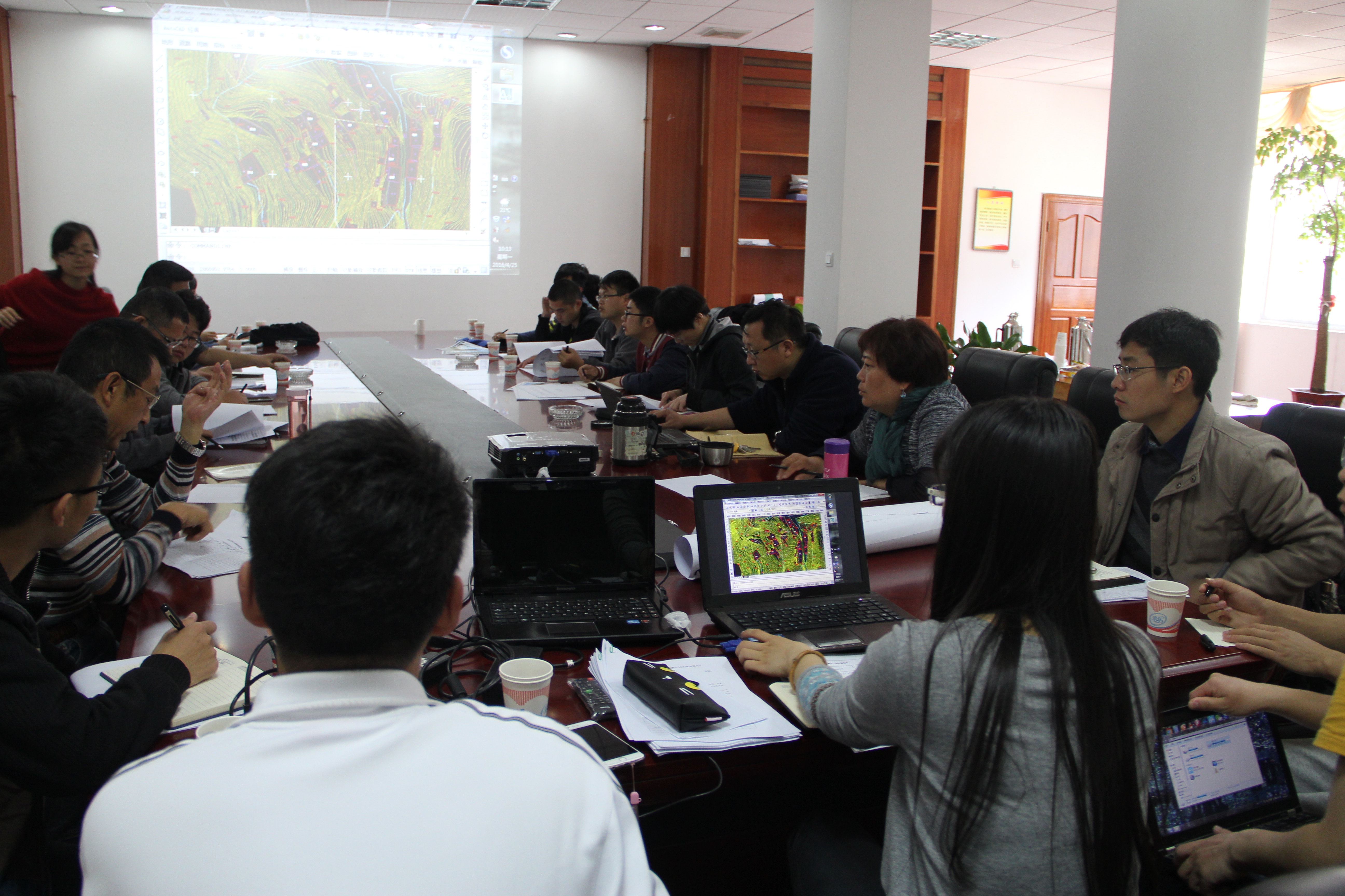 4月25日师生们马上投入到紧张有序的工作节奏中,首先与泸水县异地扶贫搬迁三年行动计划指挥部负责人及相关工作人员进行沟通对接,了解了当地自然资源、人口状况、经济基本情况、基础设施建设、文教卫生、社会保障、基层组织、农村建设管理、主要农作物及经济作物种植、自治州发展目标、村庄建设等情况。在此基础上师生们分组就即将规划的异地搬迁村庄进行基础信息了解及核实工作。尽管核实工作量大且繁琐,但我校师生都以高度的责任心,专心致志工作直至深夜。