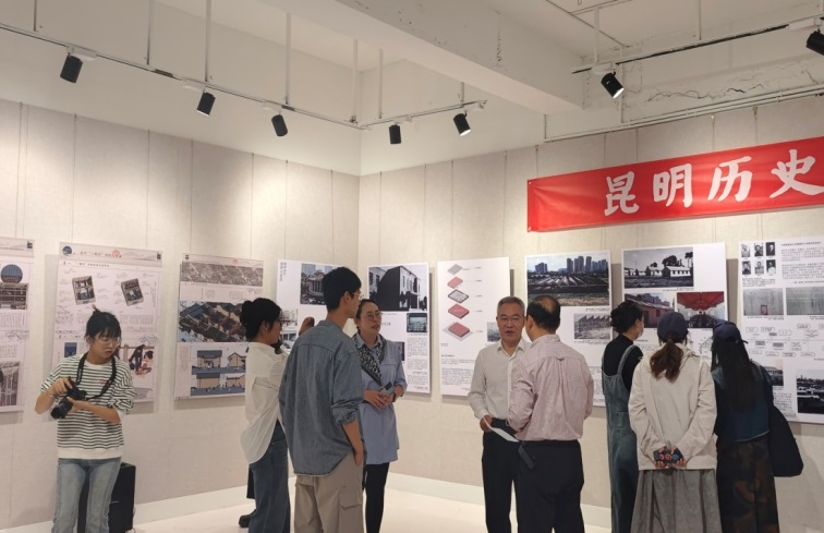 在自由参观环节,老师、同学和来宾们纷纷步入展厅,近距离感受昆明历史建筑的魅力。展览通过多媒体形式,生动展示了昆明建城以来保存至今的重要历史建筑,从明清时期的古典风格,到民国时期的近代风貌,再到抗战时期与建国后的特色建筑,每一种风格都承载着独特的时代记忆。