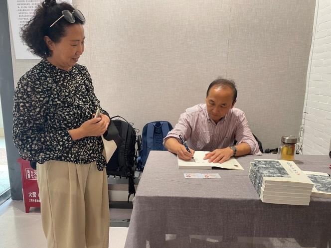 图9 周峰越教授为为到场来宾签名送书