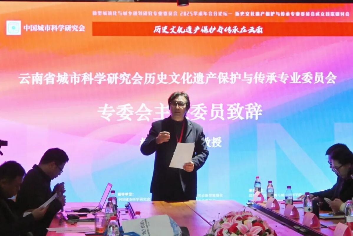 杨毅院长作为专委会主任委员致辞,公布了首批委员名单,并提出未来工作的重点方向:聚焦研究成果的科学凝练与实践转化、搭建智库协作平台、推动保护技术创新、促进政策有效落地,让云南丰厚的历史文化遗产在当代焕发新生。他进一步号召全体委员凝聚行业力量,共同助力文化传播、人才培养与资源整合,为云南历史文化遗产的保护传承与文化资产转化提供支撑,服务全省社会经济高质量发展。