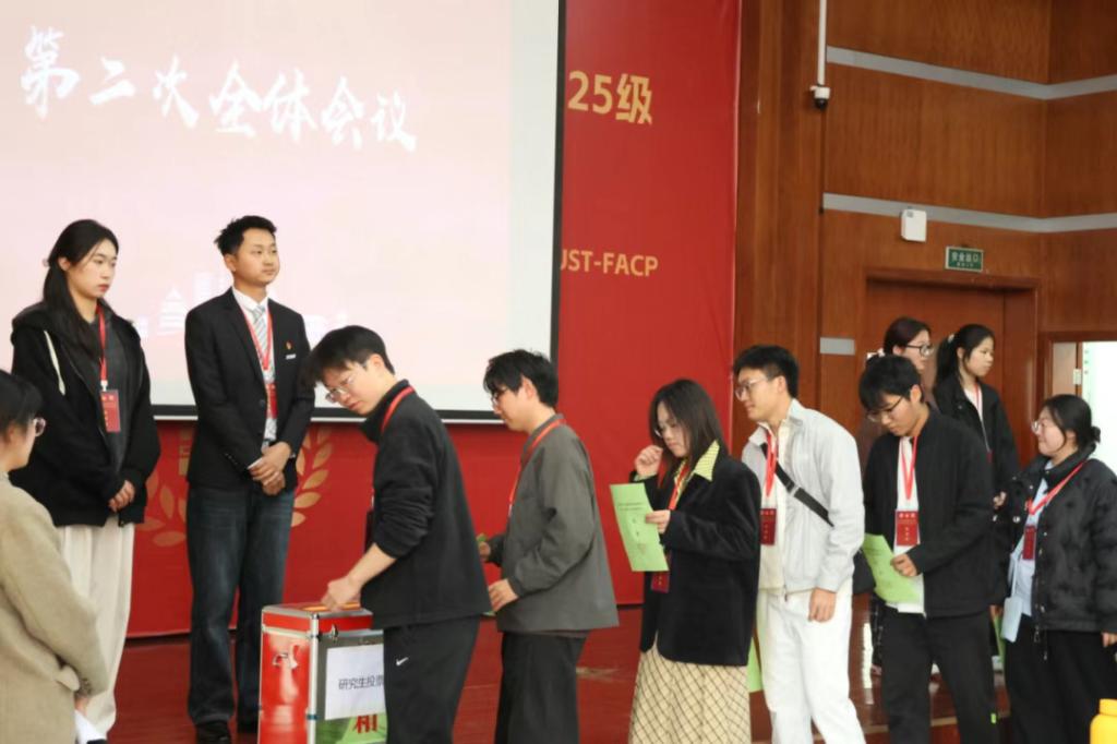 在第二次全体会议上,各项议程经过审议并获得通过,随后以无记名投票方式选举产生了新一届主席团成员。张琰、李晓升、雷凤婷成功当选为第十二届学生会主席团成员;刘昱江、汪佳萱、普鑫则当选为第十二届研究生会主席团成员。
