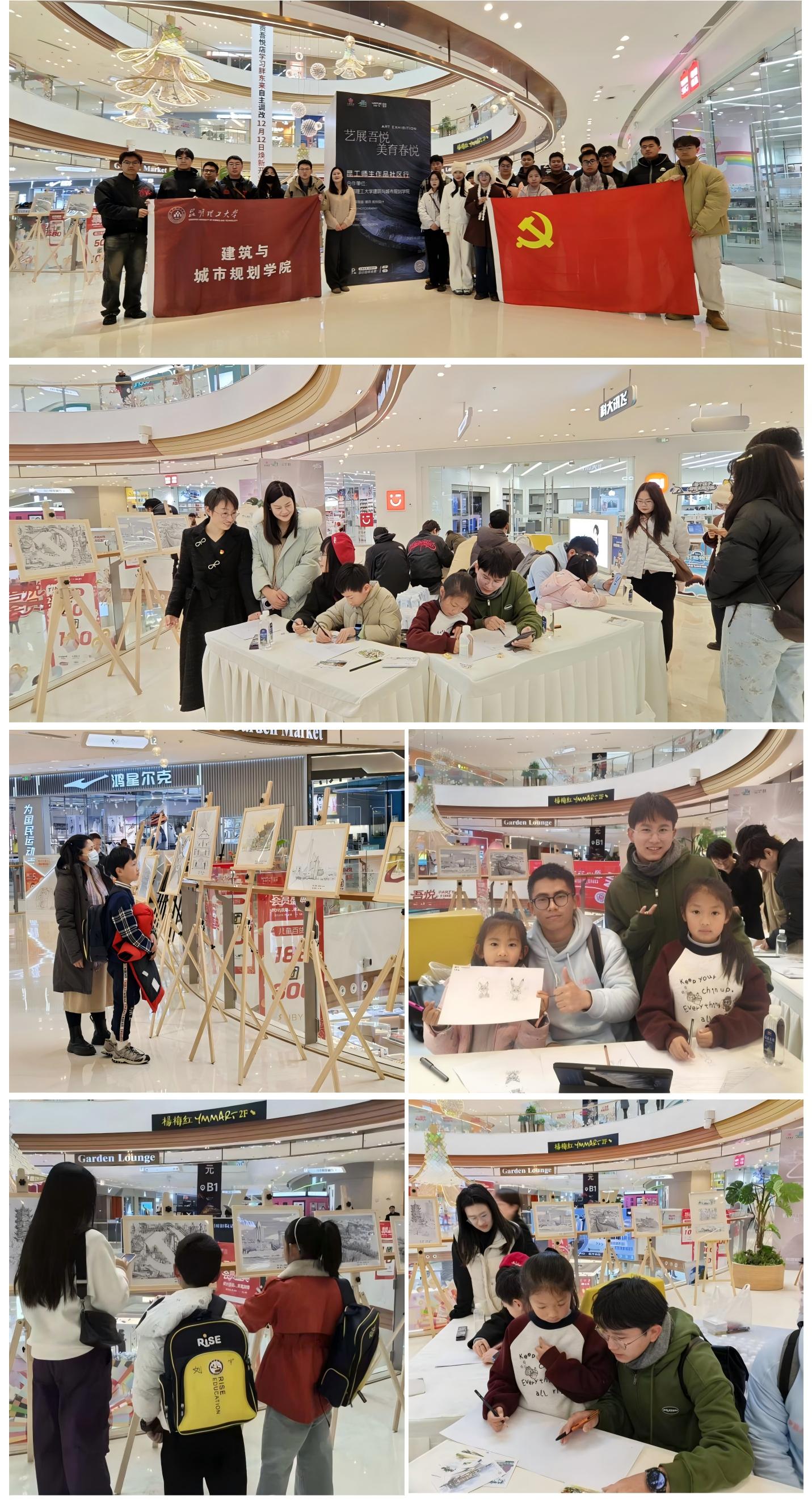 202512月27日上午,在建筑与城市规划学院党委的领导下建筑专硕研究生党支部、规划专硕研究生党支部与高原绿色健康人居创新团队党支部,联合呈贡区洛龙街道春悦社区在吾悦广场共同开展“艺展吾悦,美育春悦——昆工师生作品社区行”活动。