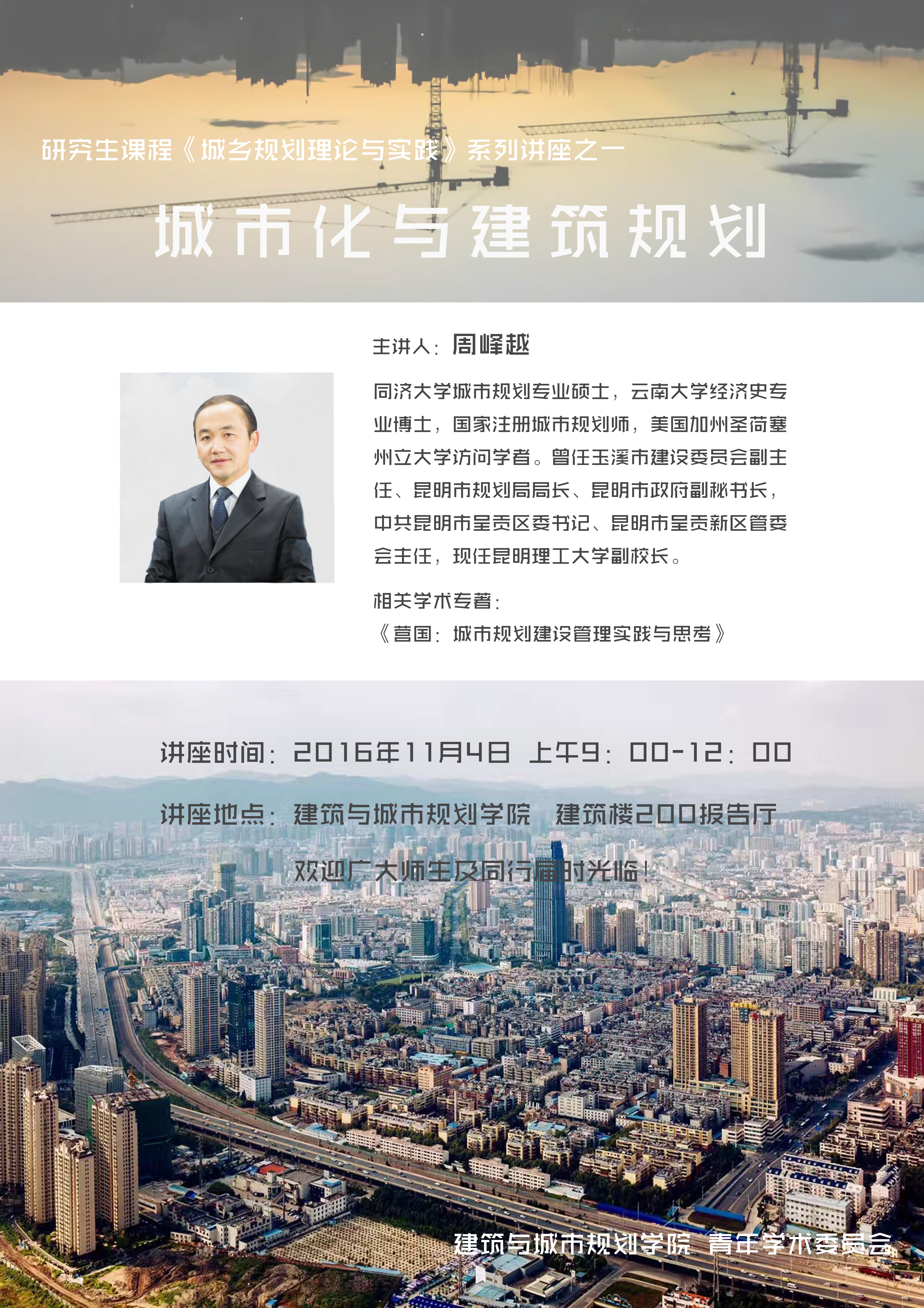 讲座:城市化与建筑规划(昆明理工大学周峰越副校长)