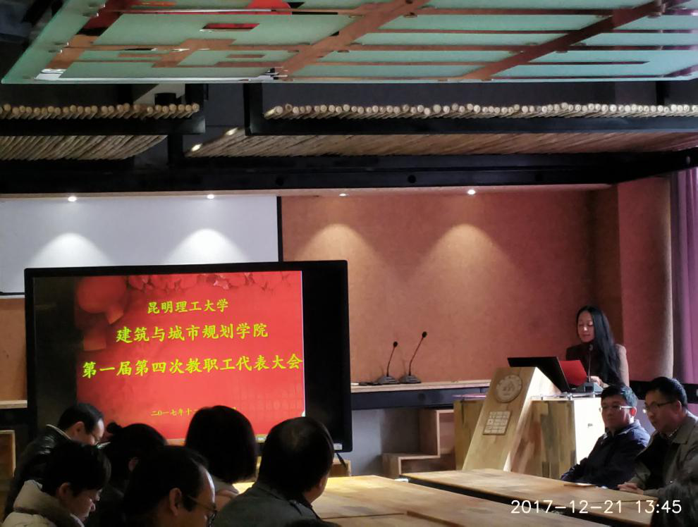 第一届第四次教职工代表大会在呈贡校区建筑楼205召开。校工会王玉副主席亲临现场致辞,高度肯定学院工会的工作,并预祝本次教代会圆满成功。